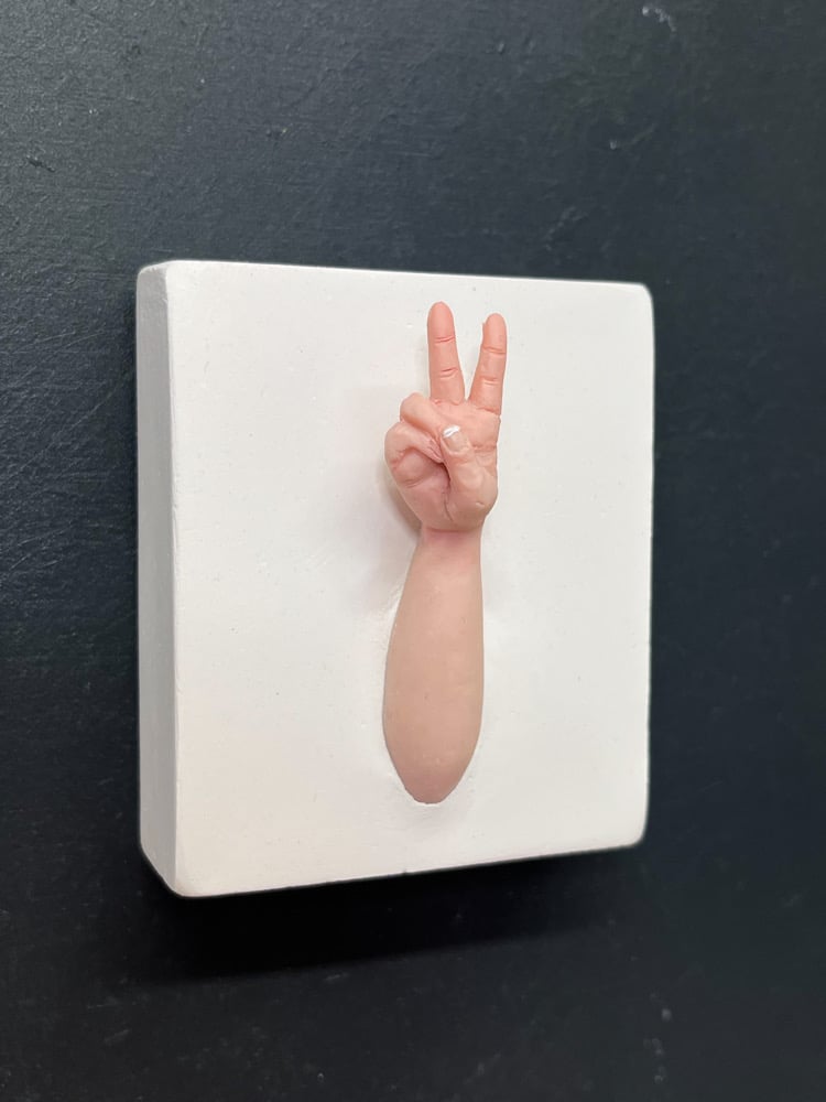 Wee polymer clay hands trapped in plaster.